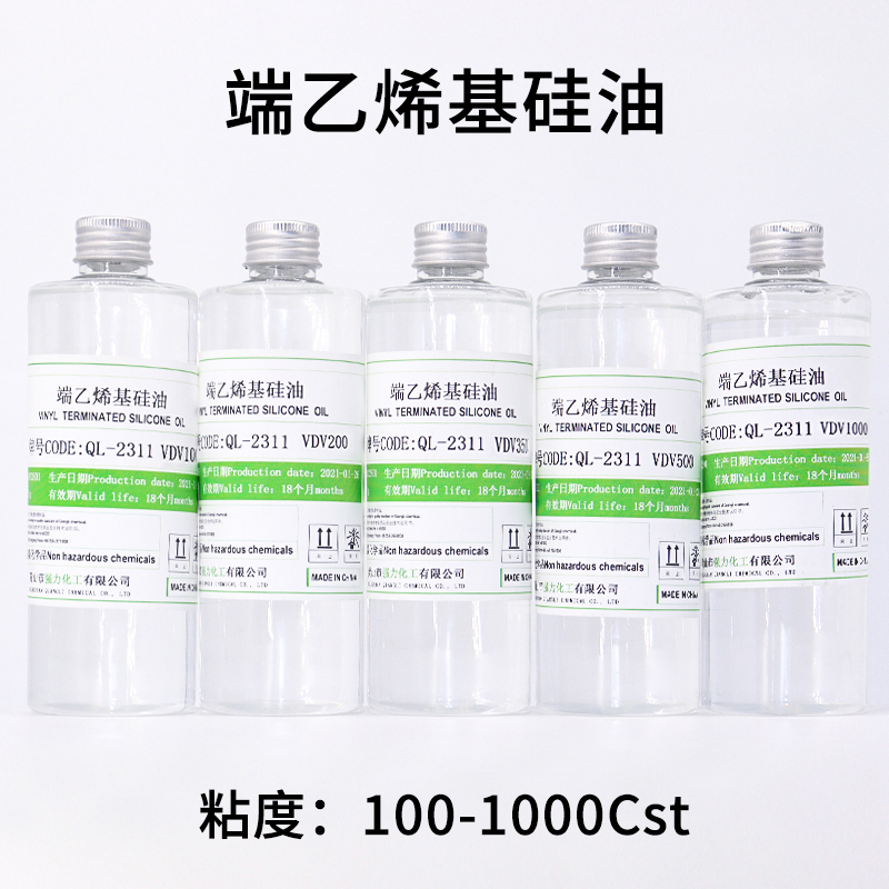 乙烯基硅油主要有端乙烯基聚二甲基硅氧烷(Vi-PDMS)和端乙烯基聚甲基乙烯基硅氧烷(Vi-PMVS),可根据需要提供不同粘度和乙烯基含量的产品。乙烯基硅油可分为:端乙烯基硅油和高乙烯基硅油,是加成型液体硅橡胶、有机硅凝胶等的主要原料;混炼胶的改性剂/塑料添加剂/补强材料等。化学方程式如下: