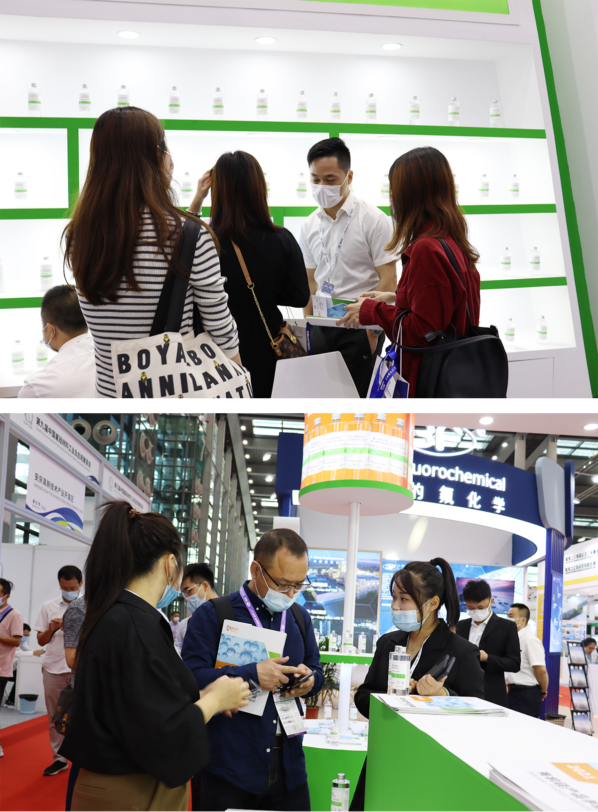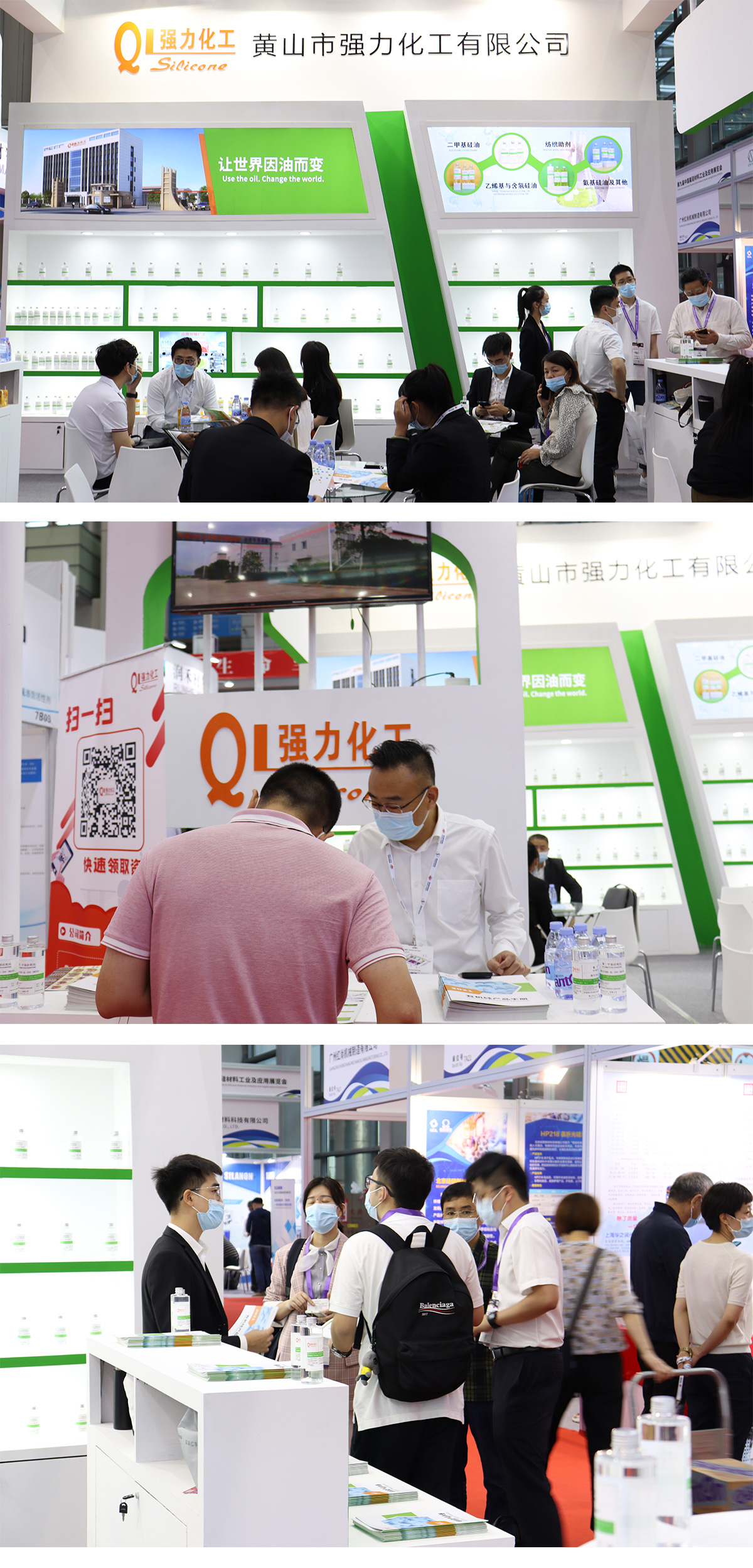 强力化工的小伙伴们个个精神抖抖,热情满满的上前给来观展的朋友们细心介绍,为他们认真解说。随着观展人员越来越多,我司展位可谓门庭若市,销售部的同事们和前来观展的朋友们洽谈甚欢同时也交换了联系,为接下来的合作奠定了基础。
