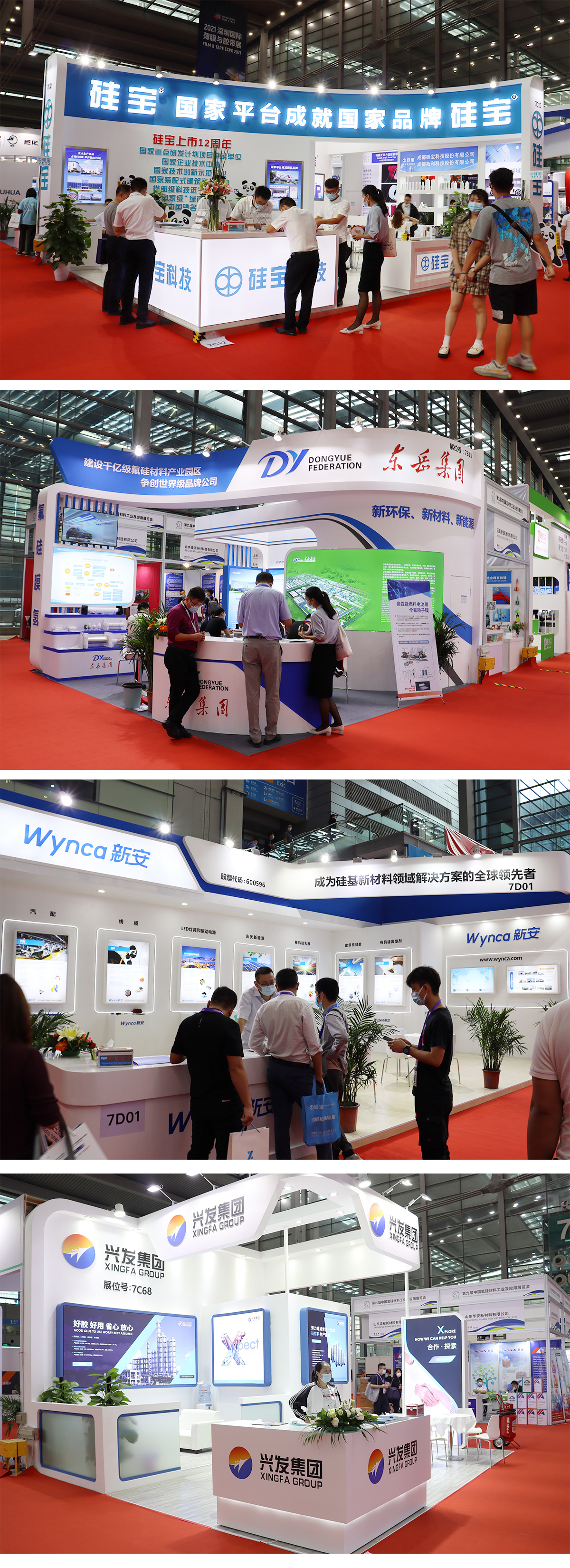 本届四展联动盛大展会是由中国氟硅有机材料工业协会携手励展博览集团举办的、旨在加快氟硅产业创新发展的专业性展会,并与“深圳国际薄膜与胶带展”、“2021深圳国际全触与显示展”、“深圳国际胶粘带展”等多个氟硅下游相关展会联合展出,总面积6万平米,展商450余家,参展买家超过4万人。