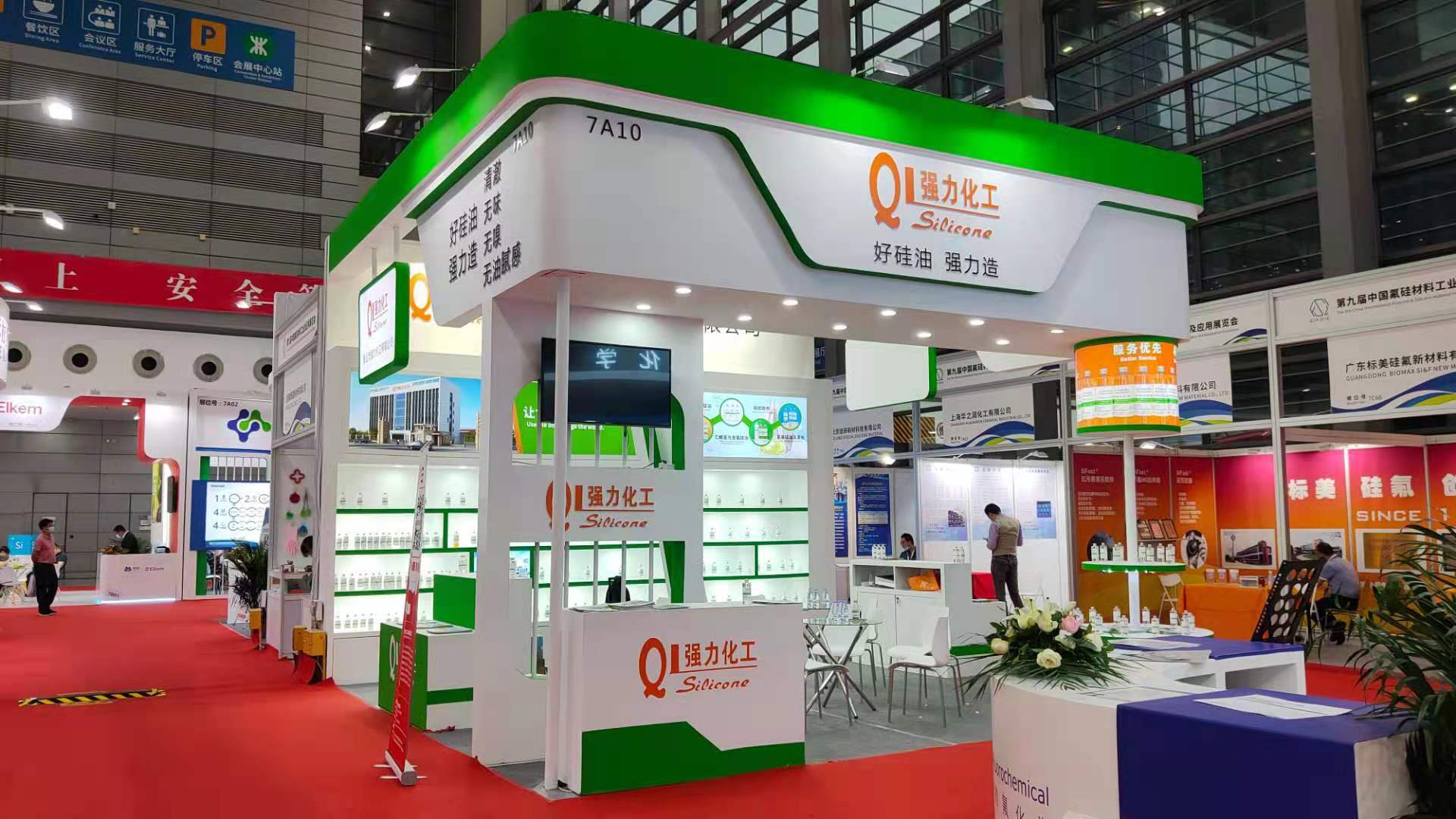 展会开幕式于19日10时正式拉开序幕,强力化工展位独特的设计风格以及别具一格的展架就已经吸引了不少观展人员的驻足。