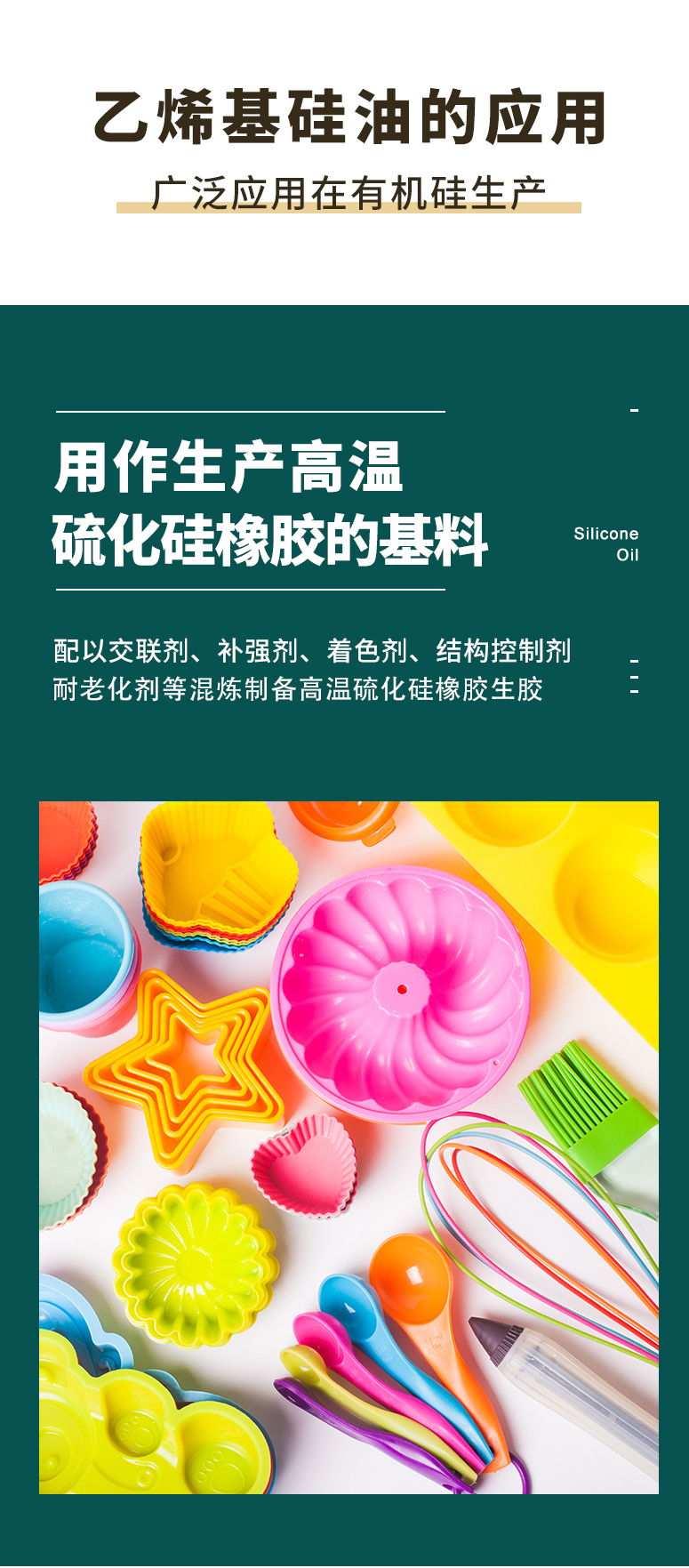端乙烯基硅油:是指双乙烯基封端的聚二甲基硅氧烷,是加成型液体硅橡胶、有机硅灌封料、硅凝胶等的主要原料,可作为混炼胶的改性剂。