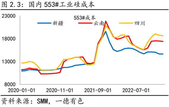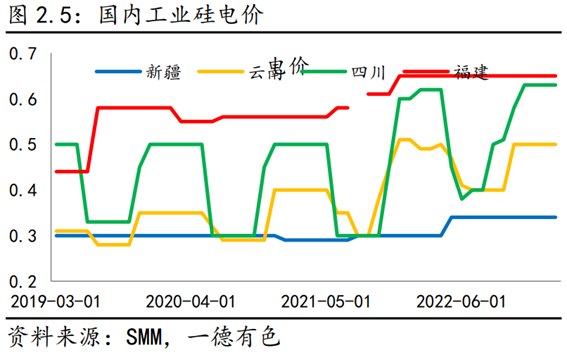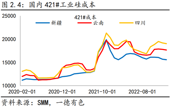 电力供应及电价问题成为制约南方工业硅企业顺利生产的主要问题,据了解云南地区执行电价相较2022年比上调了3分/度;福建地区若进线电压高即过网费低,当下综合电价最低为6.2毛/度,过网费高的企业执行综合电价达到6.6-6.7毛/度。同时福建地区亦有水电,也开始执行浮动电价,一般年底枯水期电价会有所上涨5分/度左右,且今年开始执行尖峰电价,当地企业电力成本呈现上涨态势。