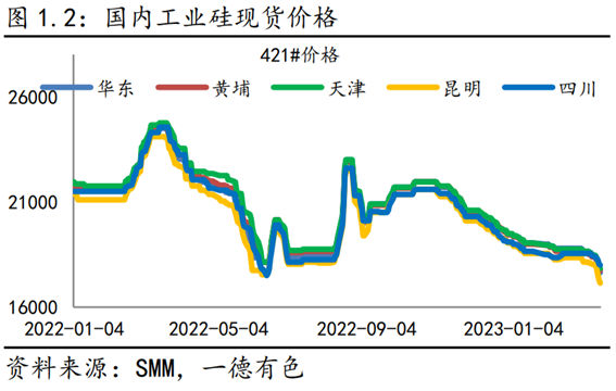 2022年12月22日工业硅商品期货成功上市,在春节前消费疲软的基本面情况下上市前两个交易日内工业硅现货价格从19700元/吨下跌至17000元/吨,但现货市场表现平稳回落报价并未跟随期货价格波动,期货价格宣泄情绪后开始反弹。但新进期现贸易商的参与打破了原有工业硅行业的贸易模式及现货市场供需格局,春节后新进贸易商现货市场积极采购缓解了厂家的销售压力,现货市场出现为期一周短暂的反弹。但终端实际消费除了多晶硅需求平稳外,有机硅及铝合金仍处于放假期间采购积极性不高,尤其有机硅行业依旧面临全行业亏损的情况,复产复工积极性不高。在弱消费显示的情况下,期现货价格同步下滑,且由于期现贸易商的抛售使得价格出现了踩踏行为,3月底期货价格跌破16000元/吨,跌破部分企业生产现金流成本,南方地区工厂出现新一轮的减产行为,且复产计划频频推迟。西南供给端收缩明显,但西北新增产能投放如常,造成一季度全国产量大幅度走高,对市场价格形成压力。