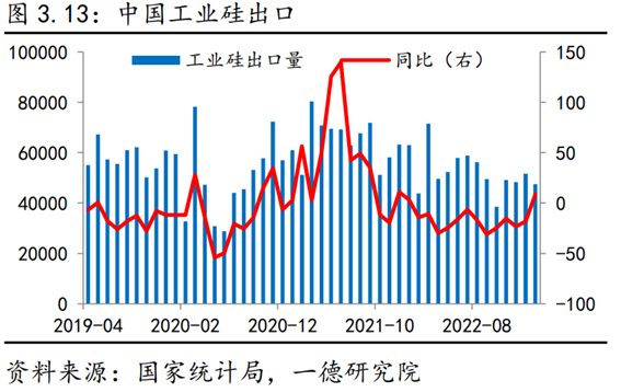 据海关统计2023年1-2月份中国工业硅累计净出口9.94万吨,同比减少0.3%,预计全年净出口量63万吨,同比增长1.6%。欧洲虽然力推《工业净零法案》,但落地尚需要时间,2023年对出口市场难以形成实质性影响。