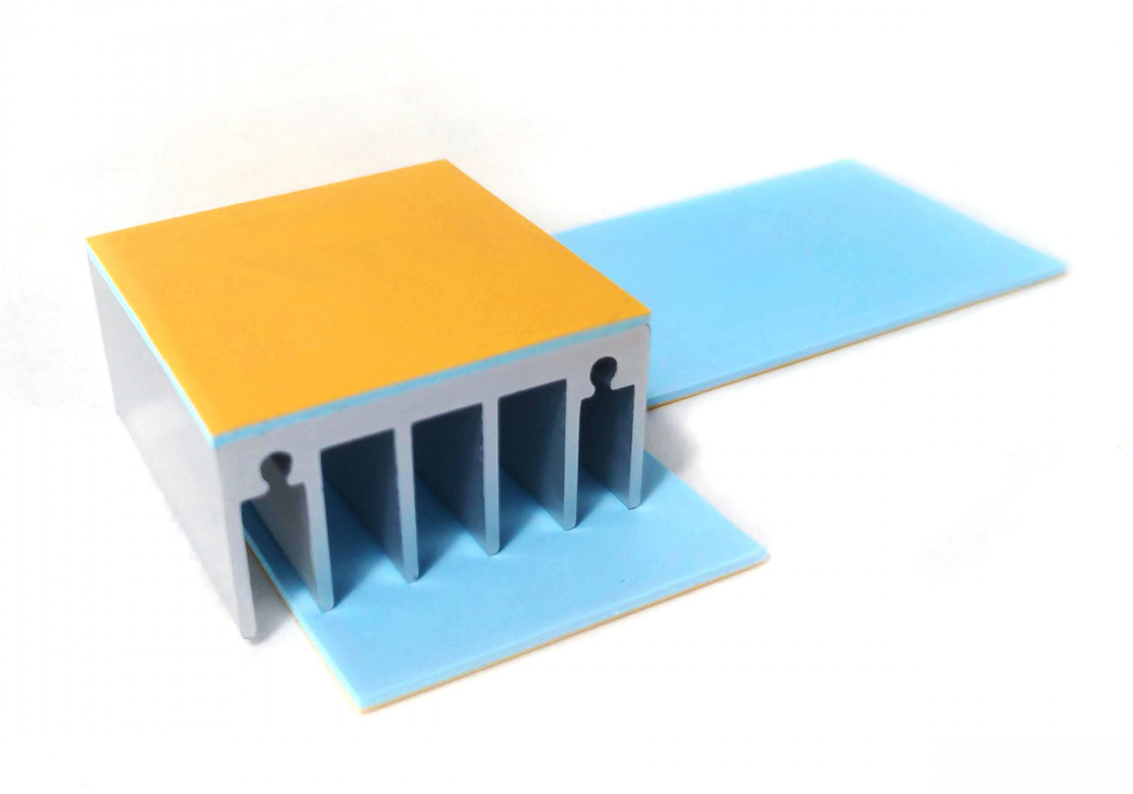 导热硅胶片只起到导热作用,在发热体与散热器件之间形成良好的导热通路,与散热片,结构固定件(风扇)等一起组成散热模组。