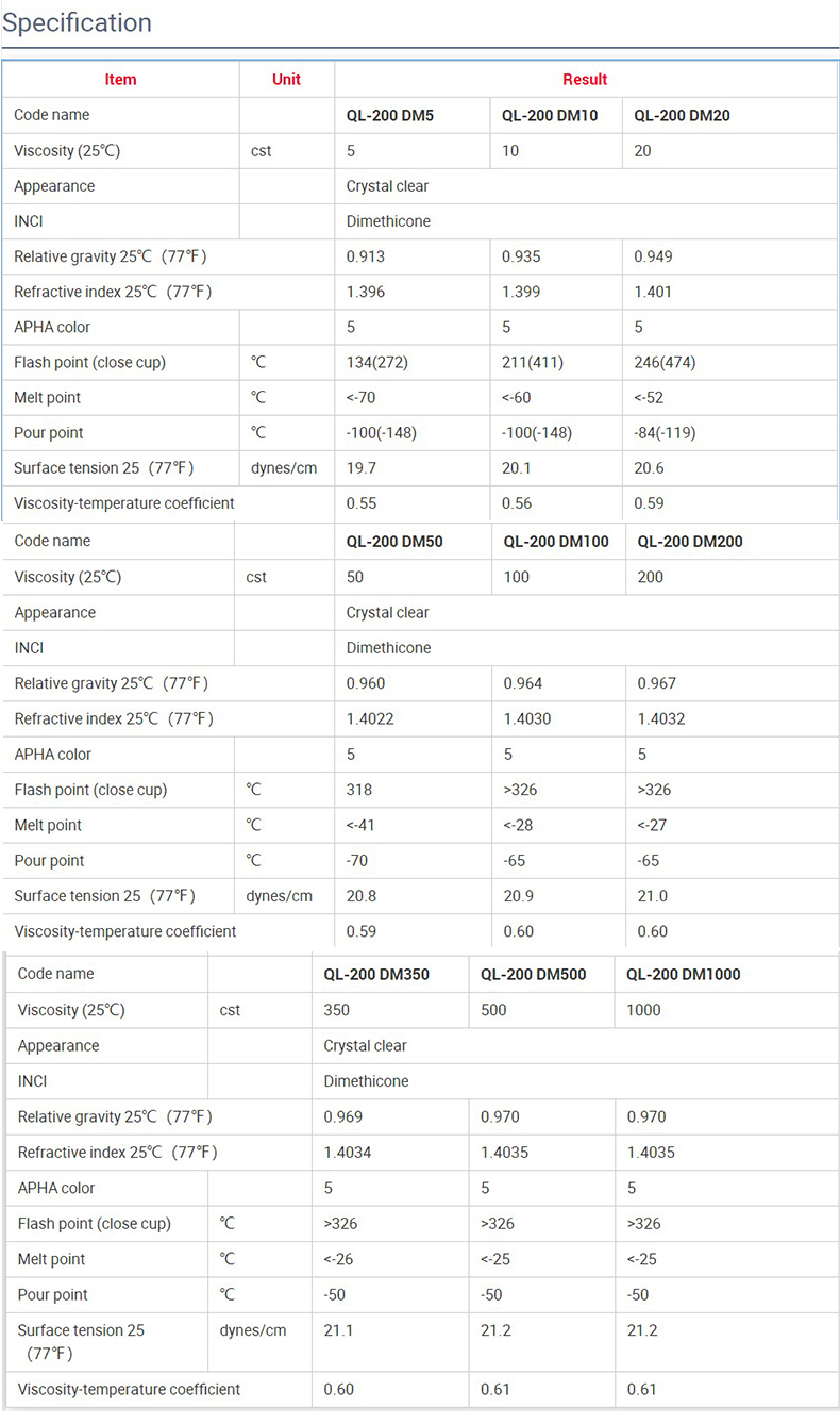 ■ 低表面张力表面张力低是硅油的特性。表面张力低表示具有高的表面活性,因此,硅油具有优良的消泡抗泡性能、与其他物质的隔离性能和润滑性能。
