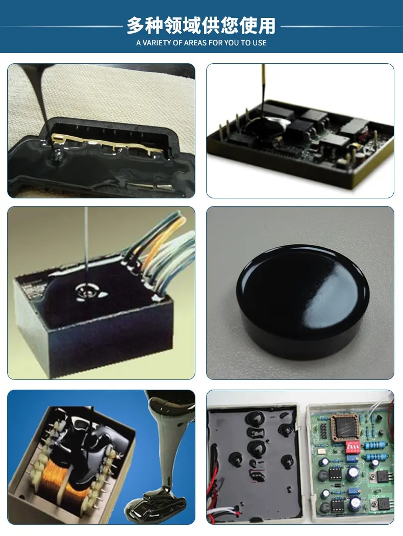应用范围:适合灌封各种在恶劣环境下工作以及高端精密/敏感电子器件。如LED、显示屏、光伏材料、二极管、半导体器件、继电器、传感器、汽车安 定器HIV、车载电脑ECU等,主要起绝缘、防潮、防尘、减震作用。